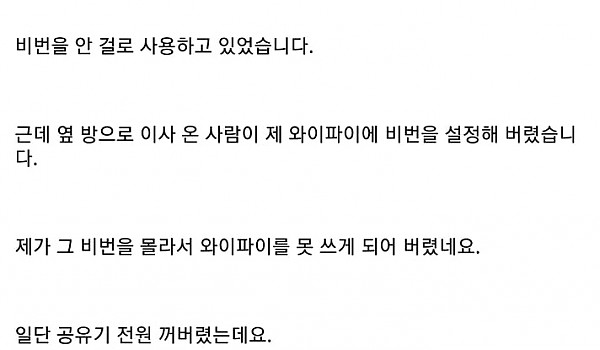 옆 방 사람이 제 공유기 와이파이에 비번을 걸었는데 어쩌죠