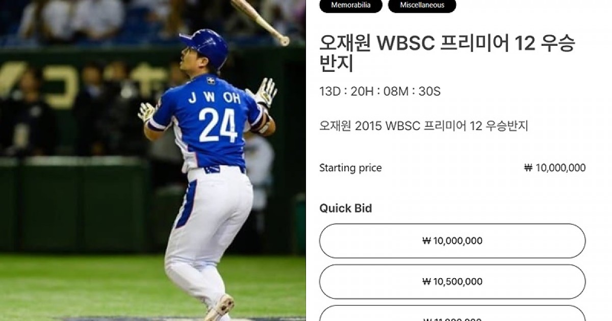 추억이 담긴 프리미어12 초대우승반지를 경매장에 내놓았는데 ..