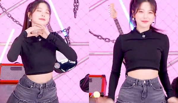 검은색 크롭티와 청치마를 입은 프로미스 나인 지헌 (영상)