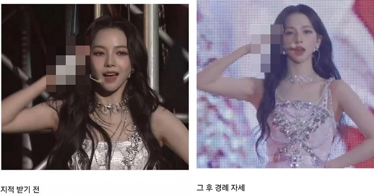 경례 자세 지적 받고 난 후 칼각 경례 보여주는 에스파 '카리나'(영상)