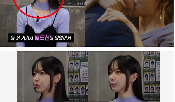 모양이 그대로 노출되어버린 설윤의 민감한 부위 ㄷㄷ