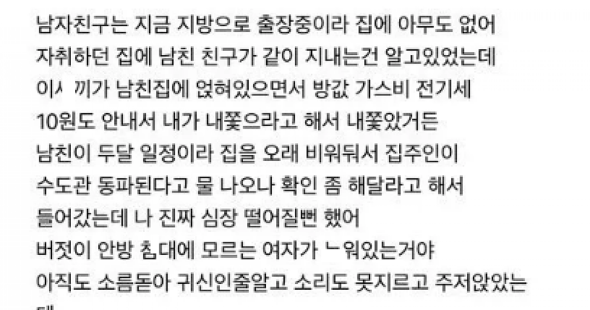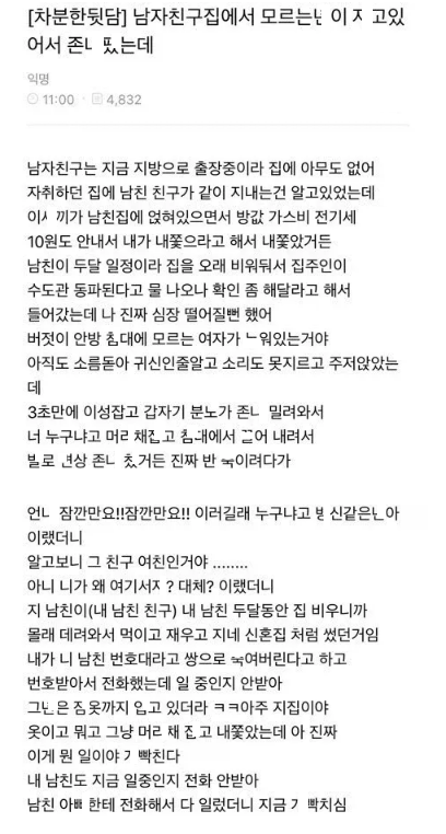 남친집에 남친 없을때 모르는 여자가 있어서 봤더니..