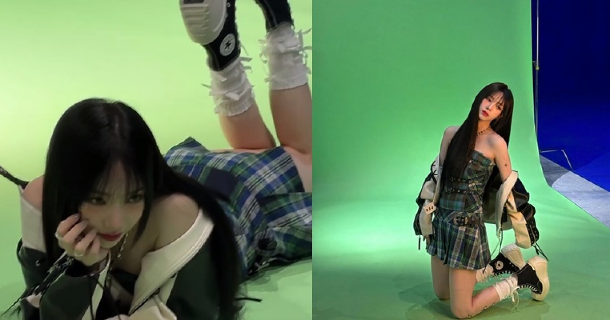 화보 촬영중에 누워서 아찔하게 만들었던 에스파 '카리나'(영상)