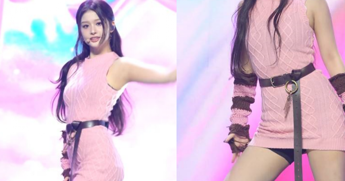 홀터넥 핑크 니트를 입고 남 다른 라인을 자랑한 엔믹스의 '설윤'