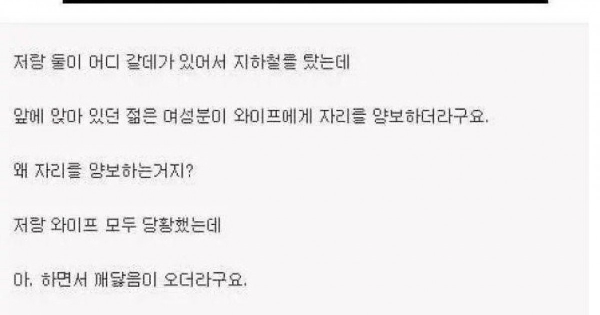 지하철에서 자리를 양보받은 와이프