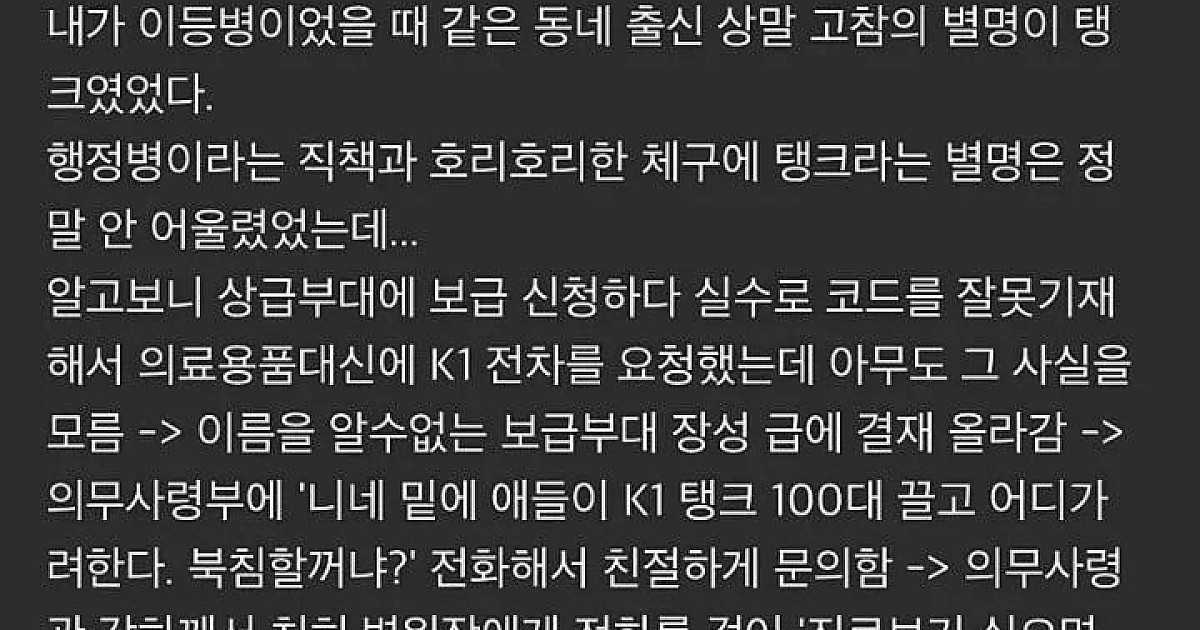 호리호리한 군대 선임 별명이 탱크인 이유