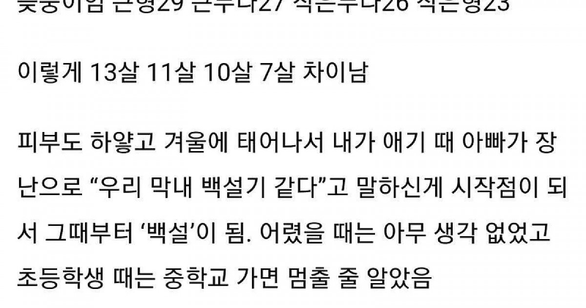 16살인데 늦둥이라고 아직도 ‘백설’이라 불러서 짜증나