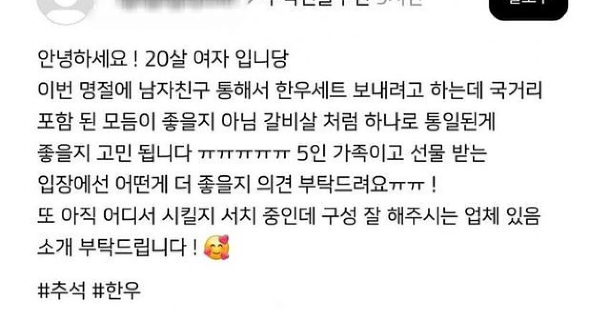 남친 집에 추석 선물 보내려는 스레드녀