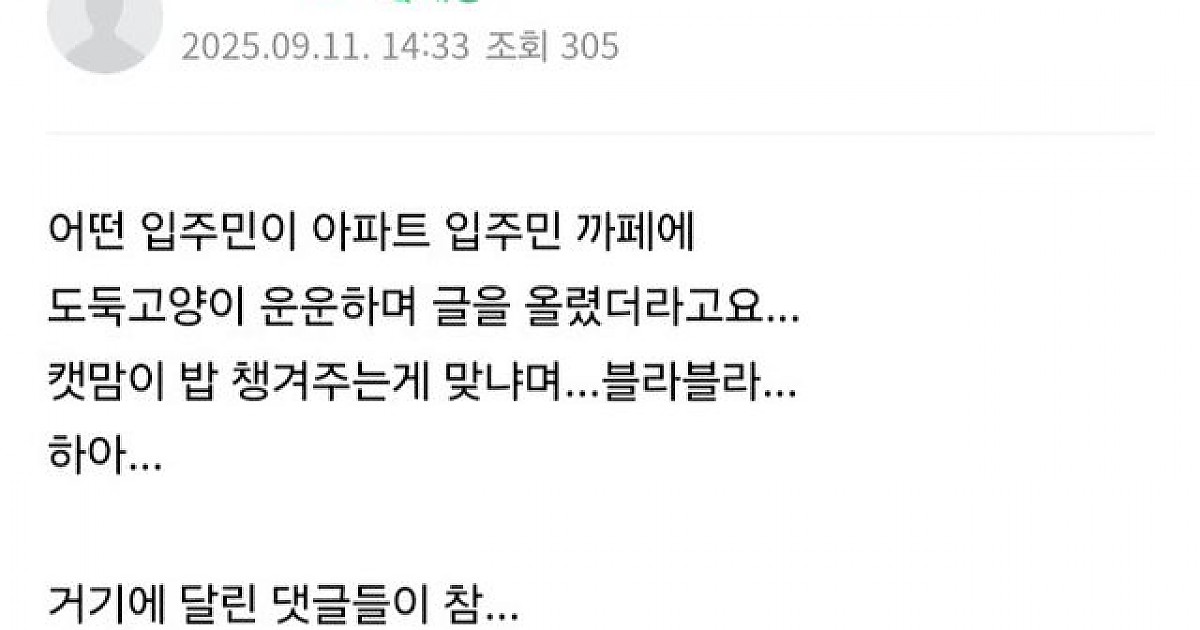 자기네 아파트에서 캣맘 규탄 여론 생겼다는 캣맘