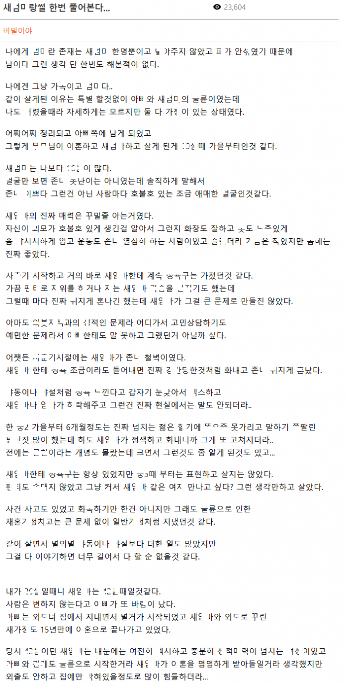 아ㅃ 몰래 새엄ㅁ랑 몇년 동안 몹쓸ㅈ한 사건