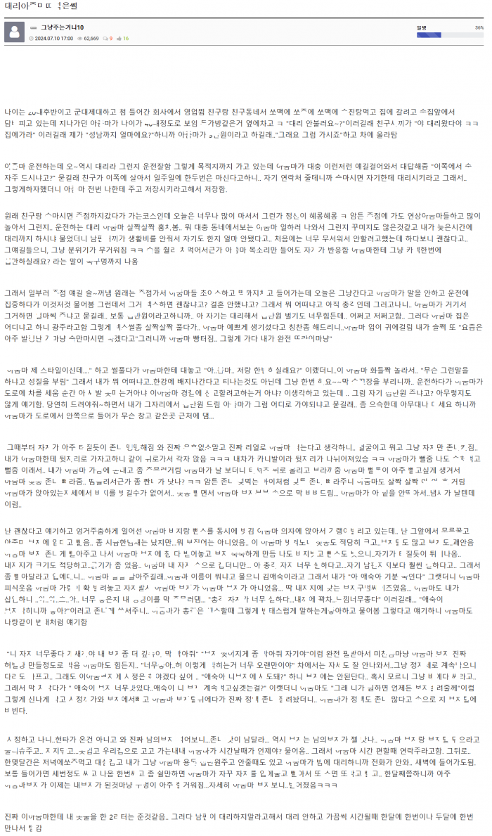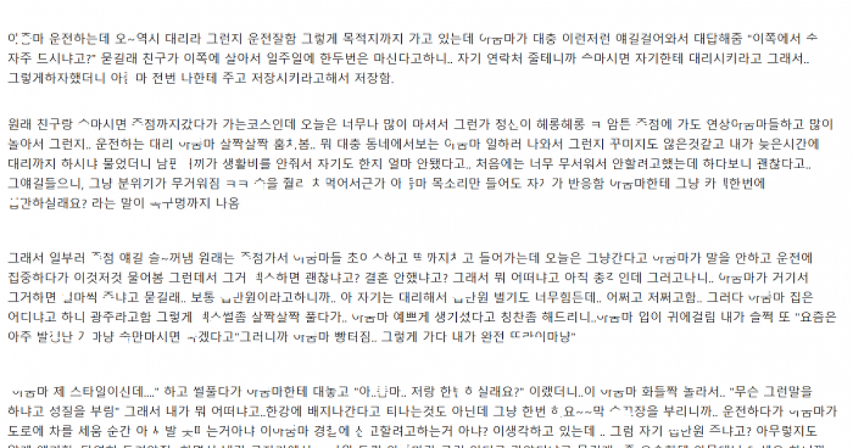 대리운전 부ㄹ렀다가 대리 아ㅈ마랑 차안에서 생긴 사건