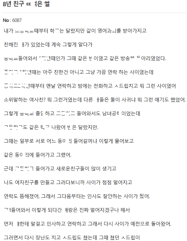 8년지기 여사친과의 비밀 썰(남녀에 친구가 있다고?)