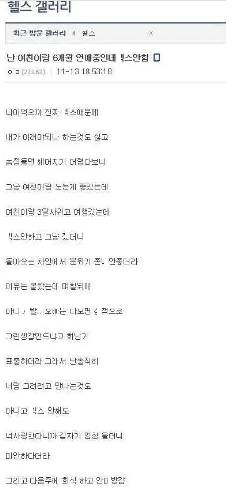 여친이랑 만난지 6개월째 ㅅㅅ 못했다는 헬창남의 최후