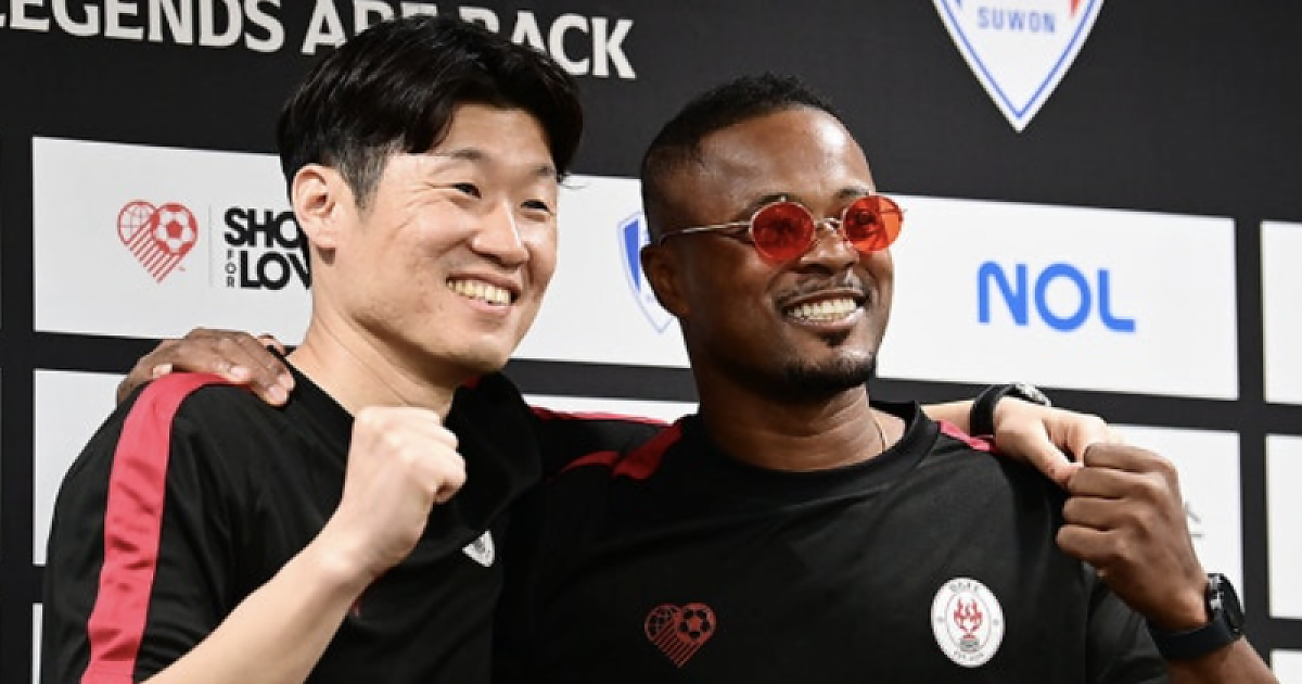 과거 맨체스터 유나이티드의 황금기를 이끌었던 '영혼의 단짝' 박지성과 에브라가 수원 월드컵경기장에서 다시 한번 뭉쳤어요.
