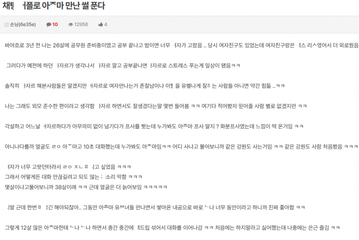 채ㅌ어ㅍ로 유ㅂ녀 아ㅈ마 ㄸr ㅁ은 썰