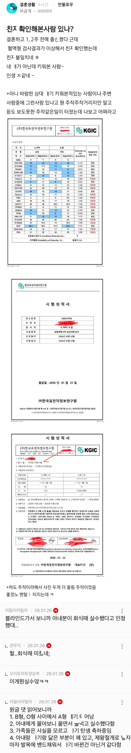 혈액형 검사 후 친ㅈ확인 레전드 사건
