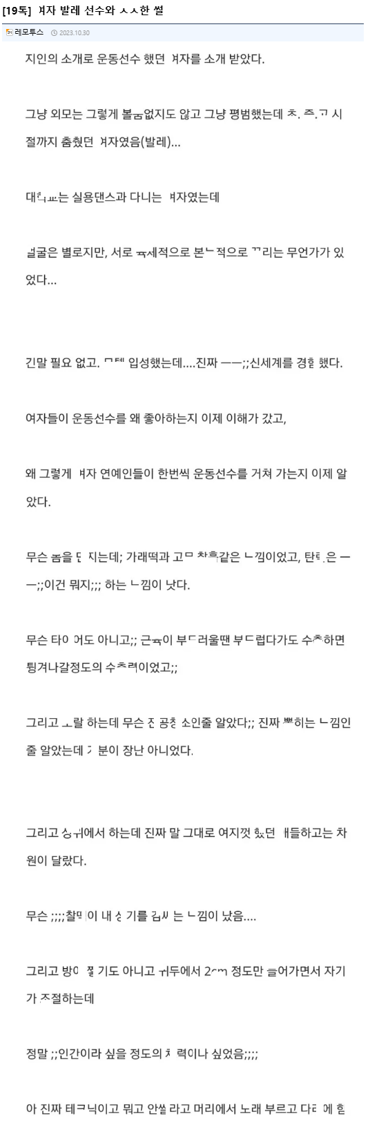 지인 소개팅으로 본 여자 발레선수와 ㅅㅅ해본 후ㄱi