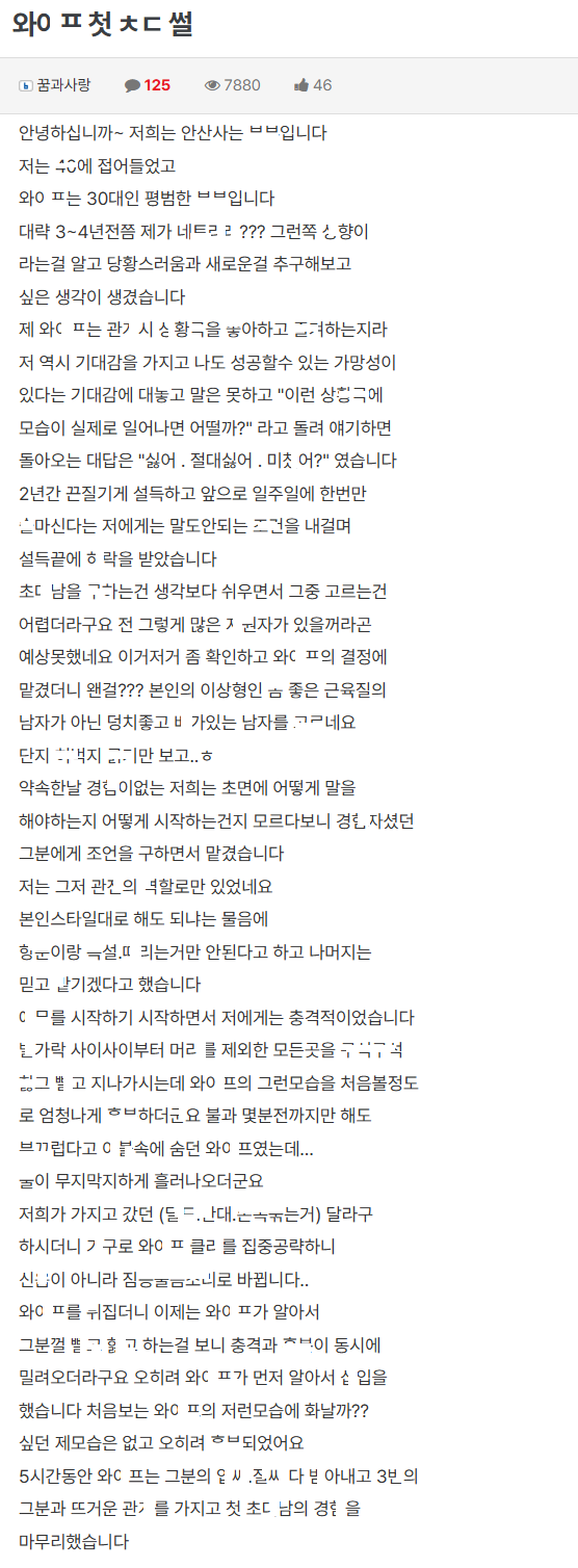 마ㄴ라 첫 ㅊㄷ ㅅㅅ썰