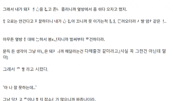 배ㄷ감 오졌던 유ㅂ녀 사ㅊ누ㄴ와의 ㅂ장난 이야기
