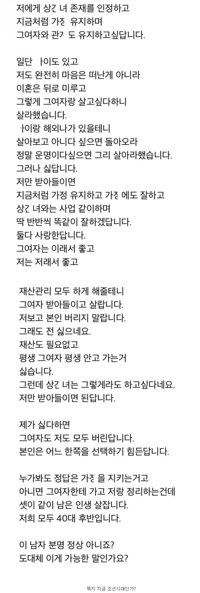 남의 편이 상ㄱ녀랑 셋이 같이 살자고 하네요