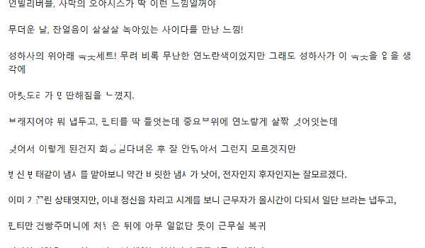 어느 여직원이 노ㅍ티로 출근한 이유