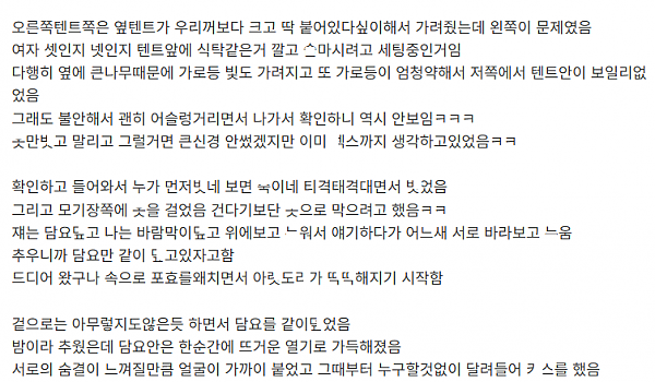 과후배와 캠핑 가서 ㅈㅈ를 ㅂㅈ에 ㄴ고 ㅂ아댄 이야기
