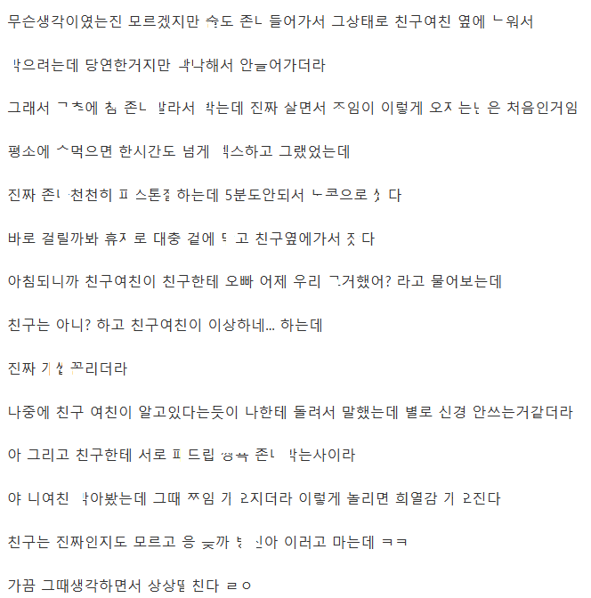 셋이 놀다가 친구 몰ㄹ 친구 여친 자ㄱ있을때 ㅂ아본 썰