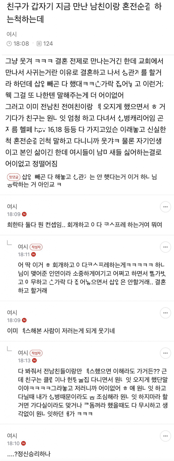 노ㅅㅅ 혼전순ㄱ 하는척하던 여친이 온갖 ㅅ병에 걸려 있었네요