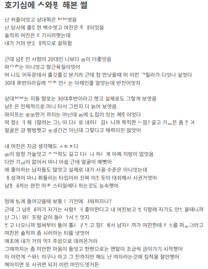 호기심에 다른 ㅂㅂ랑 스ㅇㅍ 했다가 여친이랑 헤어진 남자