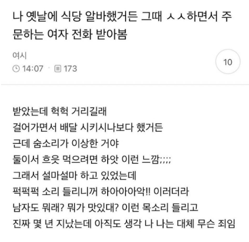 알바할때 ㅅㅅ하면서 주문하는 여자 전화 받아봤는데..