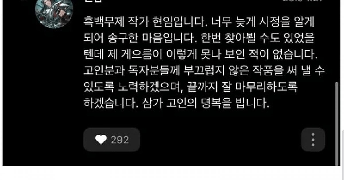 대장암 말기 환자분께서 작성했던 웹소설 댓글 + 소설 완결 후기
