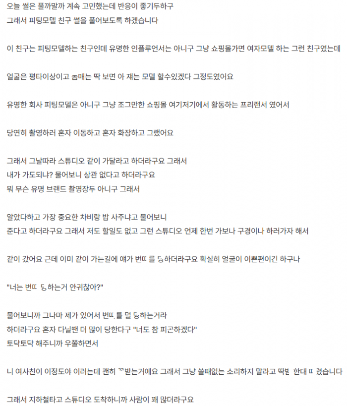 ㅈㄴ 이쁜 피팅모델 여사친집서 ㄸㅁ고 ㅅㅅ한 썰