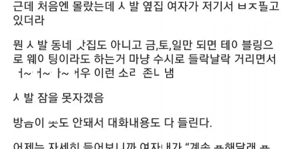 옆집 여자가 ㅂㅈ팔ㅇ 업ㅅ녀라서 화난다는 디시인