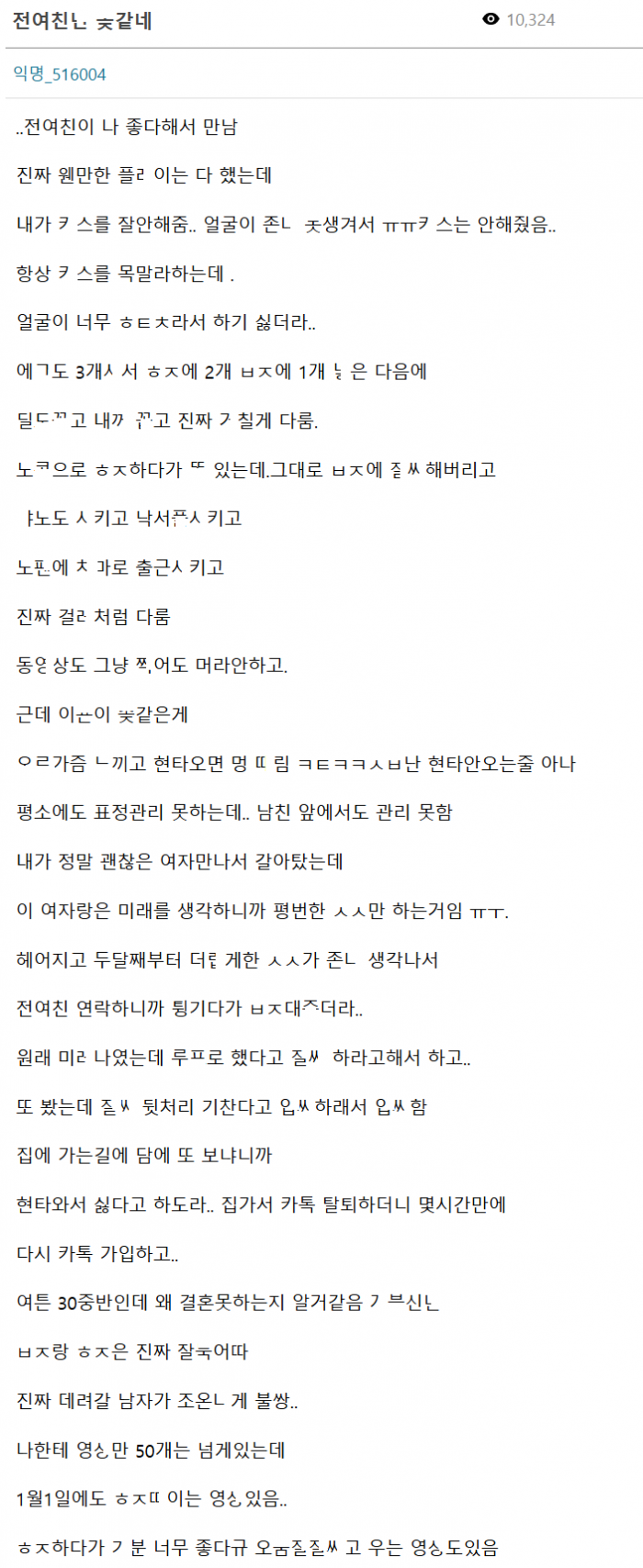 온갖 플ㄹ이로 다 ㄷ주던 ㄱ레 같은 전여친