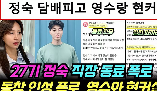 나는솔로 27기 정숙이 담배피고 영수랑 현커라고 폭로한 직장동료ㄷㄷ