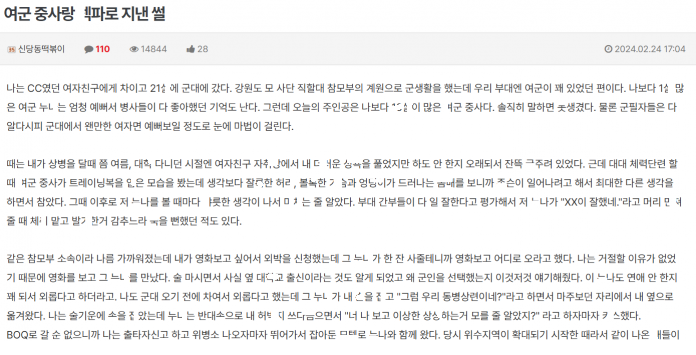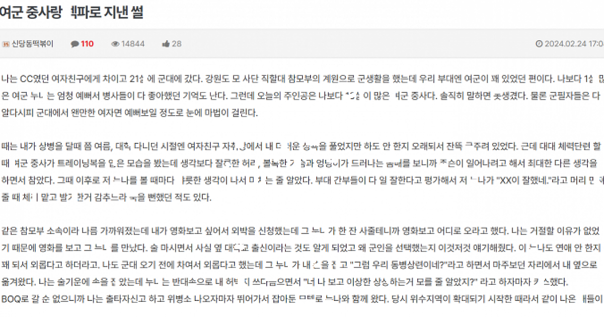 군생활 내내 여중사랑 ㅅㅅ파ㅌ너로 지내다가 ㅁ버한 썰
