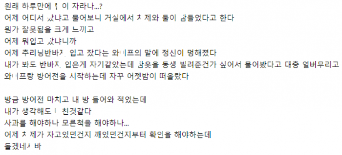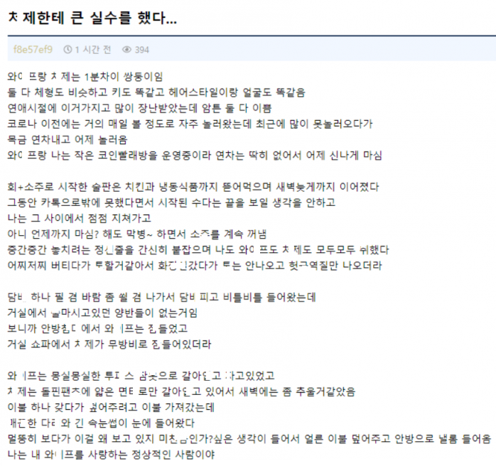 ㅈ고 있던 쌍ㄷ이 ㅊ제를 와잎으로 착각하고 ㅈㅈ를 ㅂ은 남자