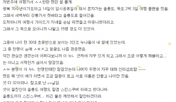 울릉도 여행 갔다가 본 연상 눈나랑 ㄸ친썰
