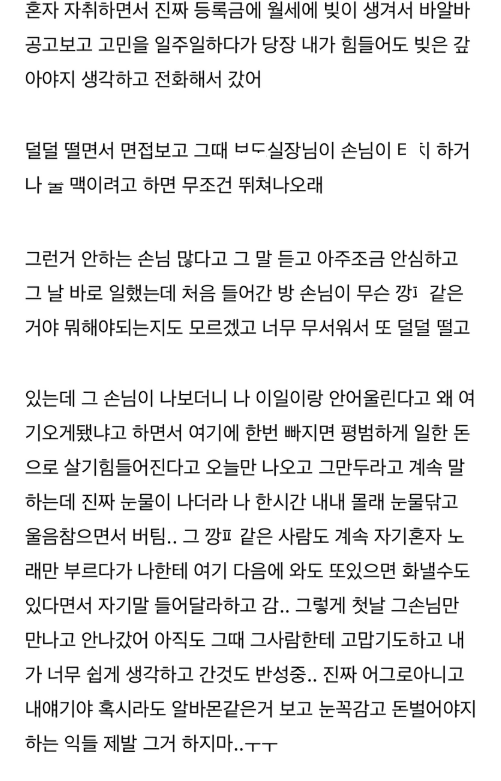 노래방 ㄷㅇ미 첫 출근했는데 ㄲ패 만나고 운 여자