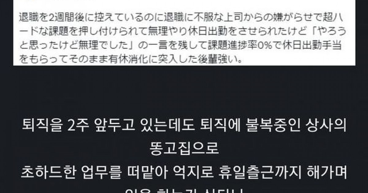 퇴직 2주 남기고 휴일 출근해가며 일한 후배,,
