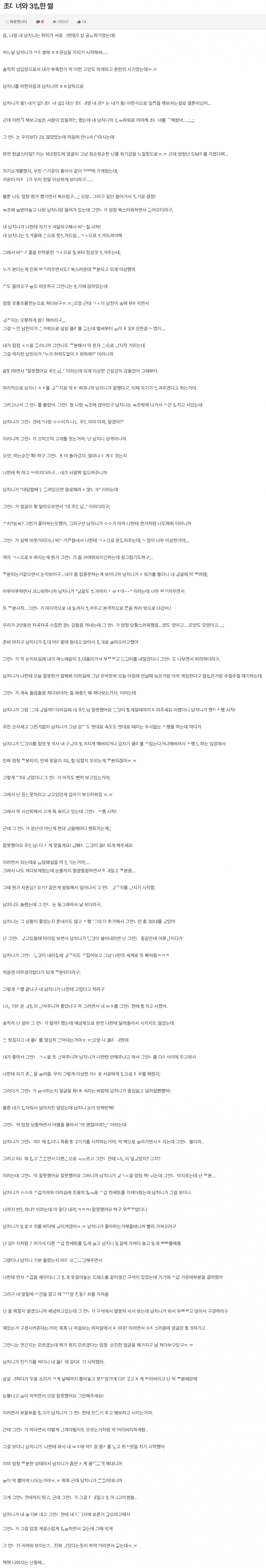 남친 ㄲ셔서 초ㄷ녀 데려와서 쓰ㄹㅆ한 썰
