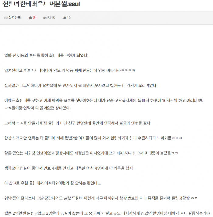ㅅ마시면서 헌ㅌ녀한테 최ㅇㅈ-ii 써본 이야기