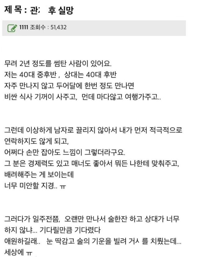 썸남이랑 첫 ㅅㅅ후 실망 했어요..