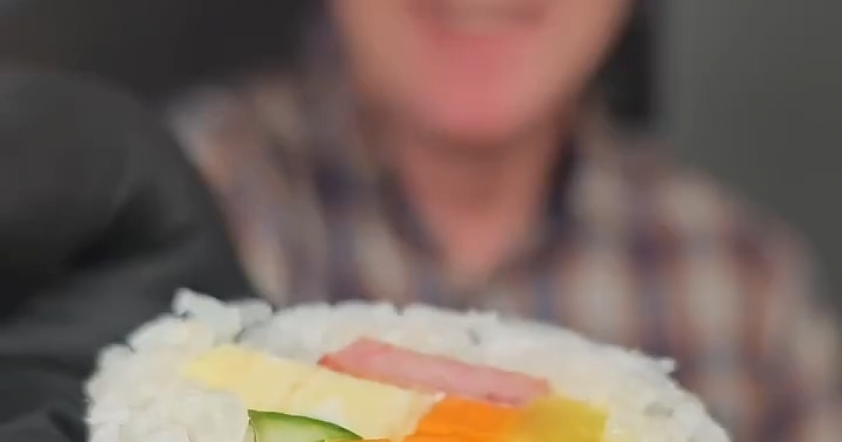 케이팝 데몬 헌터스를 보고 김밥을 만드는 할아버지