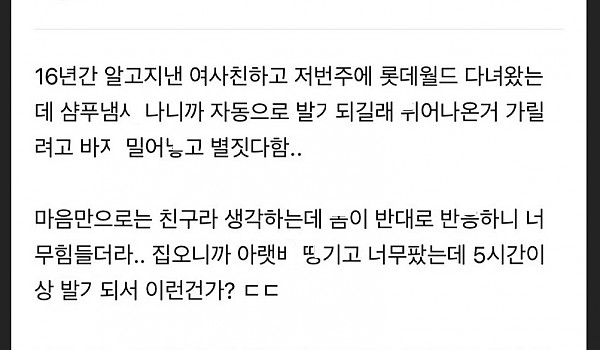 여사친과 롯데월드 갔는데 발ㄱ가 된다는 남사친 근황
