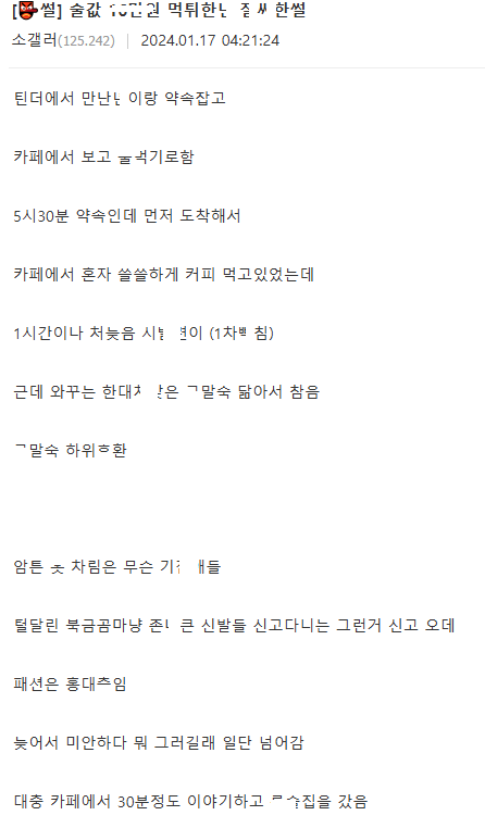 술값 튀튀한 여자 ㄲ셔서 노ㅋ ㅈ싸한 썰