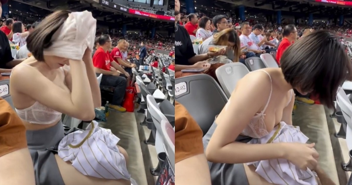 야구장에서 상의 갈아입는 누나