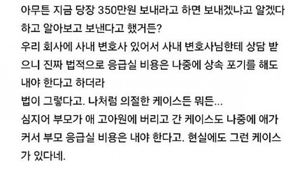가정폭력으로 의절한지 15년 지난 애비의 병원비를 낸 사람