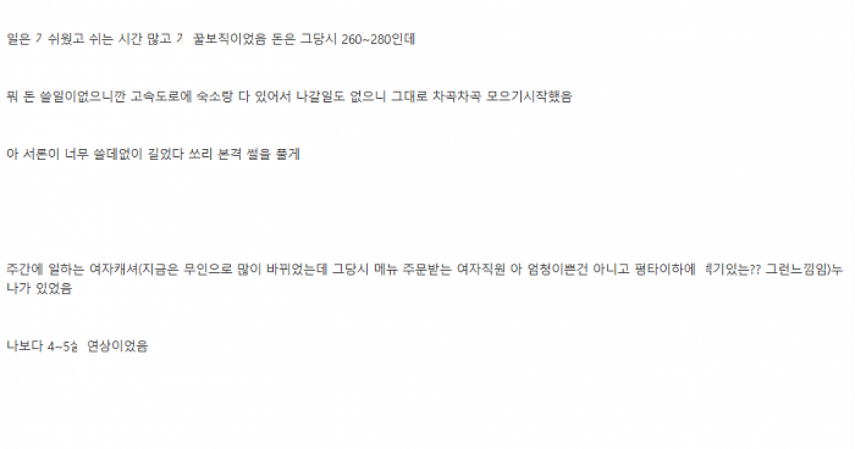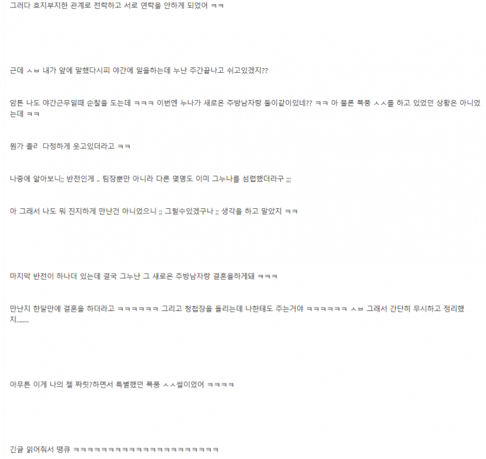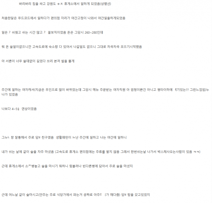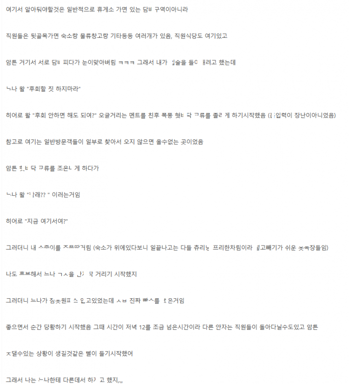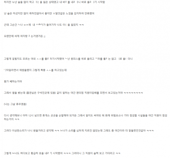 휴게소에서 일할때 여직원 눈나 ㄲ셔서 몰래 ㅇF외ㅅㅅ한 이야기