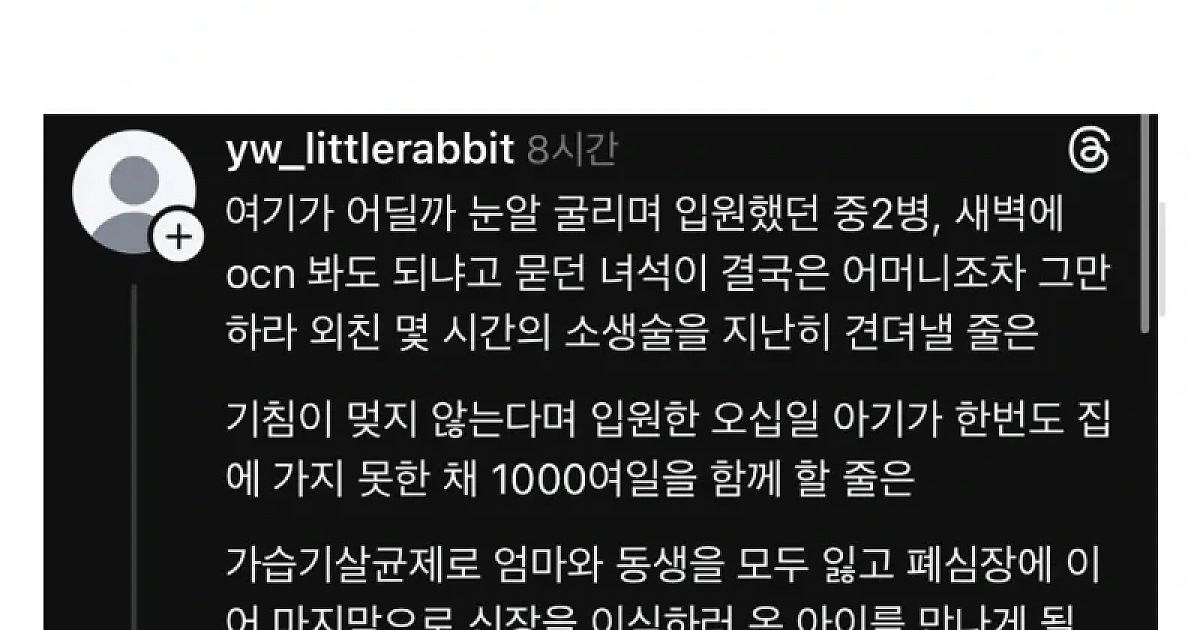 소아중환자실에서 일한 사람이 올린 글...